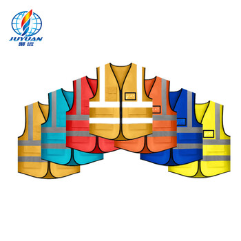 聚远 JUYUAN 贵宾款 V领5口袋燕尾反光马甲黑袋 工地施工交通治安反光衣 红色