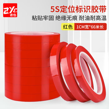 者也(ZYE)5S桌面标识定置胶带1CM宽*66米 白板划线警示贴彩色胶带6S物品定位贴 红色