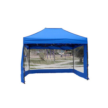先锋连 应急救援帐篷雨棚广告帐篷伸缩遮阳雨伞折叠防雨防晒蓬2X2加固黑架蓝布+3面透明围布