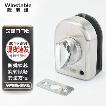 稳斯坦 304不锈钢玻璃门门锁 推拉门单门双门免开孔玻璃门锁 双开插锁 地锁带旋转-内拧外无 W530