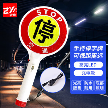 者也(ZYE)交通指挥牌手持充电式停止停字牌指示棒指示灯警示闪灯举手发光棒 充电式