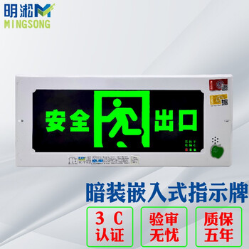 明淞 嵌入式安全出口指示灯3C消防认证 395*165mm暗装嵌墙式正向安全出口标志灯 安全通道疏散应急灯