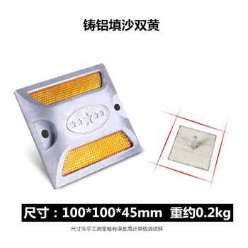 鼎红 铸铝道钉反光道钉凸起路标道路安全夜间反光标识轮廓标双黄铸铝填沙道钉(10个)