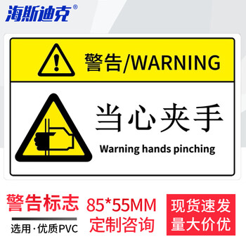 海斯迪克 机械设备安全标识牌警告标志贴纸 定做 85×55mm 当心夹手(15个起订) HK-581