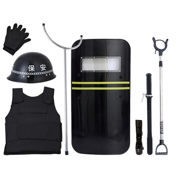 兵野 防暴器材检查保安防爆套装八件套PC头盔+黑色盾牌+普通钢叉+45cm橡胶棍+防割手套+强光手电+防刺服+脚叉