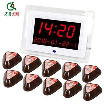 齐鲁安然 无线呼叫器 茶楼餐厅服务铃咖啡厅包房会所医院呼叫器【1个主机10个按钮】