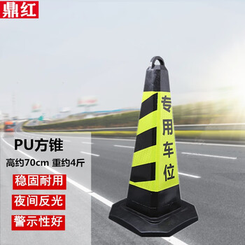鼎红 PU路锥雪糕桶交通锥路障夜间反光方锥道路安全警示锥高70cm黑黄专用车位