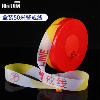 斯铂格 警戒线 盘式隔离带盒装帆布伸缩拉绳工地安全带 盒装50米默认黄白