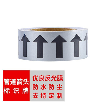 谐晟 国标管道标识贴 管道反光膜 流向导向指示标签箭头标贴不干胶贴 灰底黑箭头 5cm*20米