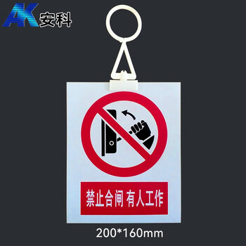安科 禁止合闸有人工作警示牌 带挂钩 20*16CM pvc安全电力标识牌