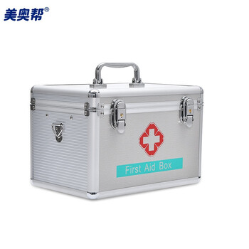 美奥帮 应急急救医药箱铝合金出诊手提急救箱收纳金属小药箱 多功能药箱10寸空箱无肩带