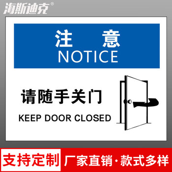 海斯迪克 HKBS08 警告标志贴纸 安全标志标识牌 门类标识 不干胶贴纸 注意-请随手关门25*31.5cm( 2张 )