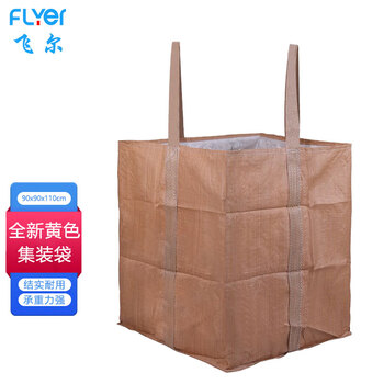 飞尔(FLYER)吨袋 全新黄色集装袋 承重1吨 加厚耐磨污泥预压袋 两吊+字托底无口布90x90x110cm【FLJD256】