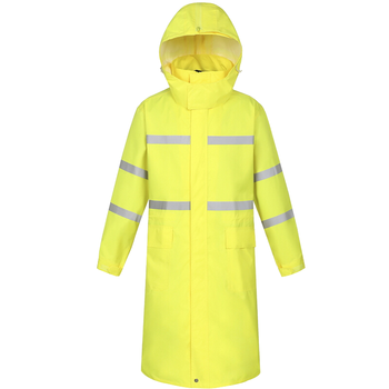者也 荧光黄长款反光连体雨衣保安巡逻交通执勤双层劳保雨衣路政施工警示雨披可印字L码031