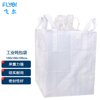 飞尔(FLYER)工业吨包袋 加厚编织袋 承重1.2吨 耐磨吊物袋 四吊上进料口下平底100x100x100cm【FLJD291】