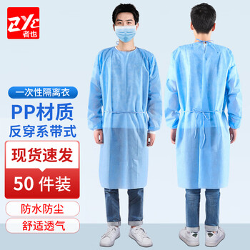 者也(ZYE)25g一次性PP隔离衣 针织袖无纺布防粉尘工作服实验参观反穿衣防护服 50件装