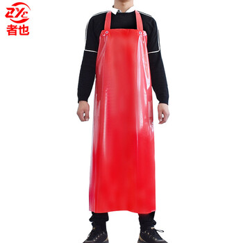 者也 防水TPU围裙防油防污耐酸碱劳保围裙厨房食堂屠宰水产加厚耐磨长款围腰挂脖围裙 红色