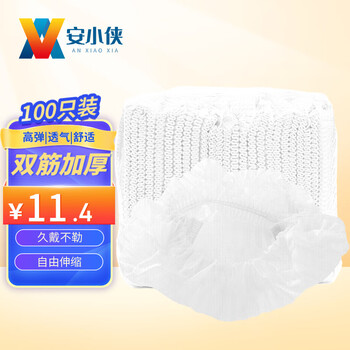 安小侠一次性帽子头套无纺布帽子条形帽防尘 凑单优选 白色100只