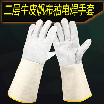 安美尚(ams)37cm牛二层皮本色单帆布袖电焊手套耐磨焊工防护手套千安50双HZDT定做