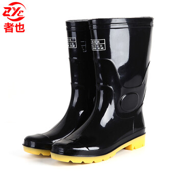 者也 耐磨雨鞋男士水鞋中筒雨靴水靴防滑防水钓鱼塑胶套鞋防汛劳保胶鞋 牛筋底42码