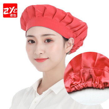 者也(ZYE)车间工作帽女工厂网帽防尘帽网帽厨师厨房防尘透气一次性卫生食品帽子男女 大红色 包边全布款