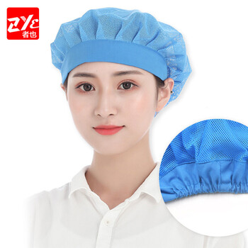 者也(ZYE)车间工作帽女工厂网帽防尘帽网帽厨师厨房防尘透气一次性卫生食品帽子男女 蓝色 包边网透款