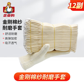 盛港 劳保手套 线手套特级金刚棉纱磨耐用防滑加密加厚棉纱耐工地工作(12付)
