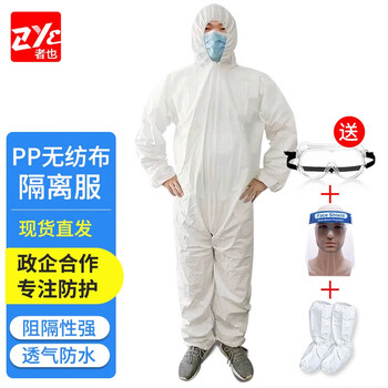 者也(ZYE)一次性PP隔离衣连体带帽防护服农药喷洒畜牧养殖无纺布防尘防飞沫隔离服+眼镜+面屏+鞋套2XL码