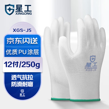 星工(XINGGONG) 浸胶线手套 漂白PU涂指涂掌防滑耐磨防油工业劳保手套 12付装XGS-J5