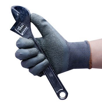 者也(ZYE)皱纹皱掌手套 耐磨浸胶胶皮劳保手套防滑乳胶挂胶半挂工地维修防护手套 灰纱灰 1双