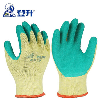 登升#339十针纱线浸胶耐磨工作橡胶防滑皱纹挂胶仓储搬运防护胶皮手套 12双(一包) 均码