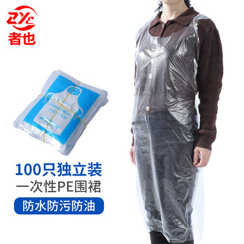 者也 一次性加厚PE透明围裙防水防油系带围腰 100只装 每只独立包装