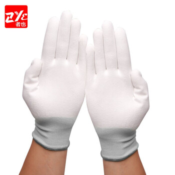 者也(ZYE) 防静电手套薄款防滑耐磨贴手白色尼龙PU涂指手套涂层涂胶浸胶涂掌电子无尘劳保手套 涂掌 M码