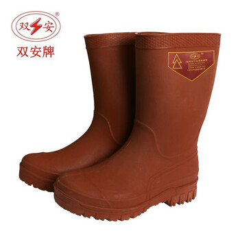 双安 25KV绝缘靴 中筒电工靴 耐磨防滑橡胶劳保雨靴 1双 棕色 45码