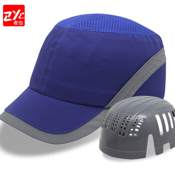 者也(ZYE)透气轻型运动防碰撞网格工作帽防砸安全防护帽 车间工作帽内胆式帽子 半网流线 蓝色