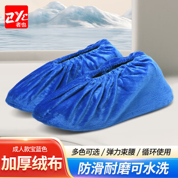 者也(ZYE)加厚绒布鞋套可反复洗防尘鞋罩耐磨防滑底室内地板脚套学生机房鞋套样品房鞋套 宝蓝色