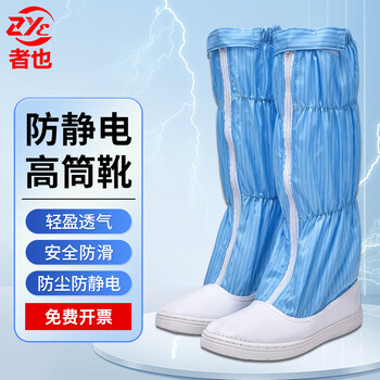 者也 高筒防静电鞋防尘高筒靴无尘室无尘鞋净化洁净室男女长筒靴防静电工作鞋 蓝色38码