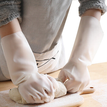 安健 乳胶手套60CM加厚耐酸碱抗撕裂化工劳保手套 白 1付