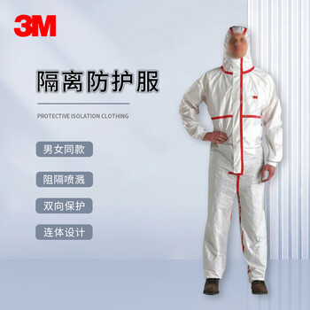 3M防护服4565带帽带红色胶条连体有效防护液体浸润液态化学品喷洒白色XXL码1件装货期7天