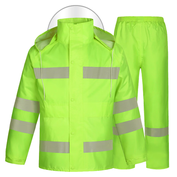 者也 成人户外加厚反光雨衣交通劳保雨衣雨裤套装 高速款荧光绿 2XL
