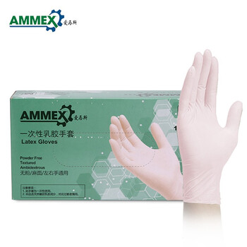 爱马斯(AMMEX)TLFC46100 一次性乳胶手套居家家庭清洁工业科研橡胶手套标准型 无粉麻面 定做 L码 100只/盒