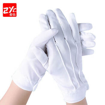 者也(ZYE)礼仪手套 加厚棉汗布劳保手套检阅表演白手套 三筋涤棉带扣10双