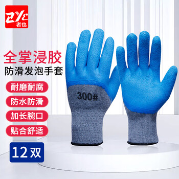 者也 浸胶发泡手套防滑耐磨工地劳保手套 十针发泡加厚棉纱/12双
