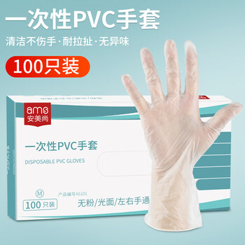 安美尚(ams)A5101一次性手套PVC检查手套加厚耐磨实验室 M-100只
