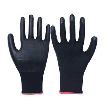 者也 劳保手套加厚胶皮塑胶丁腈防滑手套工地干活工作 黑色12双