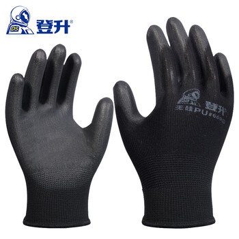 登升#669手套 13针涤纶掌浸无硅PU耐磨防滑柔软透气电子无尘防护手套 黑色12双 8
