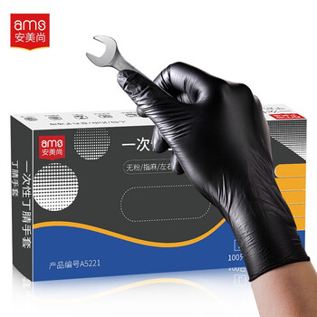 安美尚(ams)A5221 一次性丁腈检查手套 加厚指麻清洁实验室手套 黑色 100只/盒 S码
