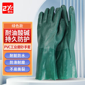 者也(ZYE)PVC工业磨砂手套 化学加工清洁耐磨耐酸碱防油防滑手套 绿色(均码)