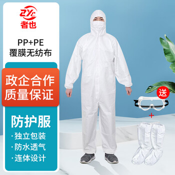 者也 一次性连体连帽防护服防水全身隔离防护衣可重复使用 PP+PE双层覆膜 隔离服+护目镜+鞋套 XL码