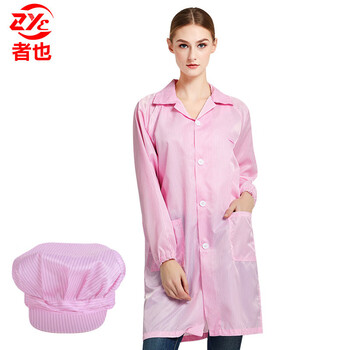 者也 防静电条纹大褂配大工帽实验室食品工厂车间电子厂无尘洁净防护工作衣 粉色 L码